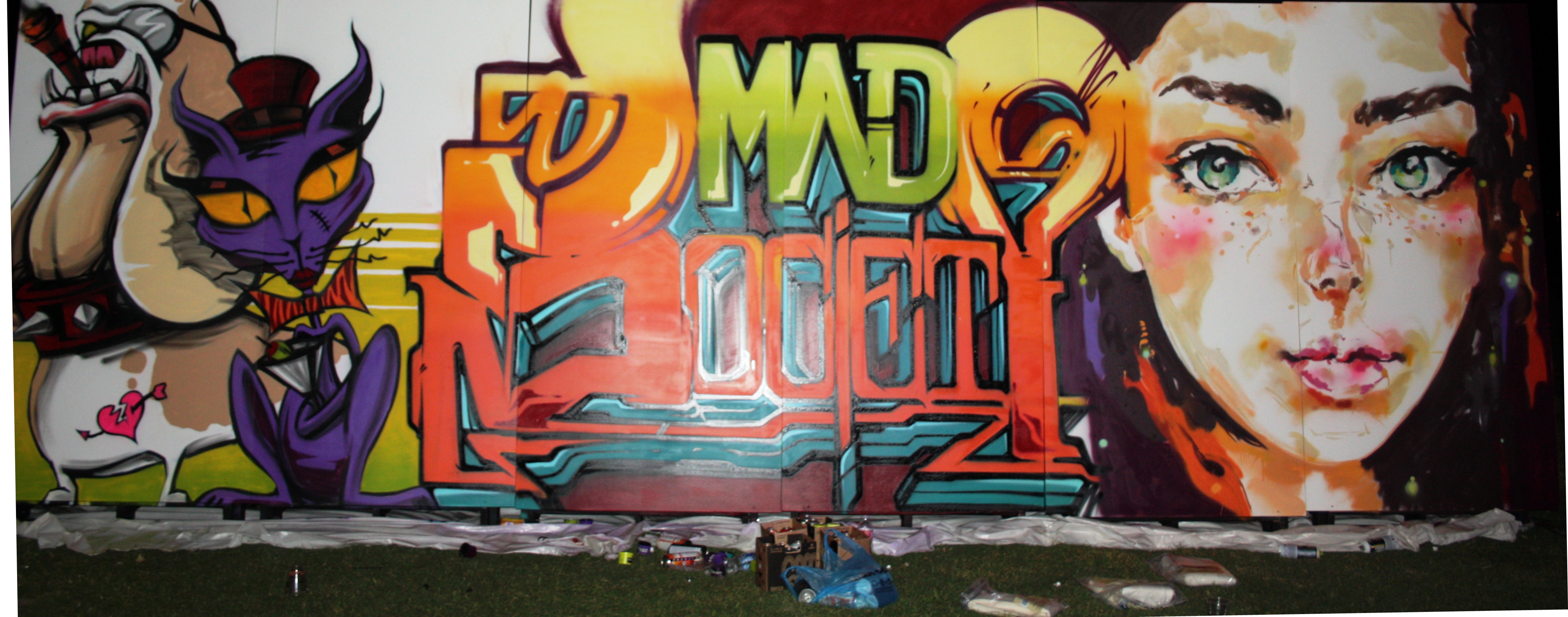 The MTAC More Than A Cone Foundation held its second annual art festival which consisted of a fashion show inspired by plastic cones, carnival games as well as live performances. But the most important part of this event for me was to see our friends execute an awesome live mural painting experience for all art lovers that were present. Like always, in great company of my love Pryer and brother Aloy who we support unconditionally; the night was spent away among family members and loved ones. Although the event itself was an adventure, I found myself most of the night at the wall the Seventh Letter members were painting at which was a great spot because it was next to the stage meaning that I had front row seat to enjoy watching the celebrity hosts and live music performances.