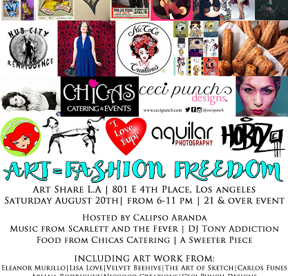 As we are getting near to the date of this main event, we have some extra great news and updates for the Annual Art = Fashion Freedom Fundraiser which will be held on Saturday, August 20, 2016 6:pm 11:00pm at Art Share LA 801 E 4th Pl, Los Angeles, Ca. 90013. This is a 21 & over event so please get ready for a Summer Night Reventon in Los Angeles and all for a great cause! As we are joining forces with two upcoming charities; Cancer Me Not and Hub City Renaissance.